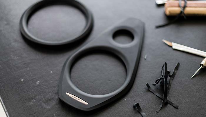 VERA PELLE NERA E ALLUMINIO SATINATO NERO