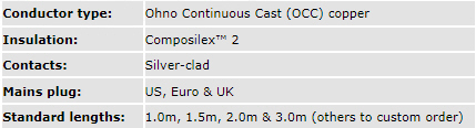 TechnologyTM Plug contacts: Silver clad OFC Connectors: Molded